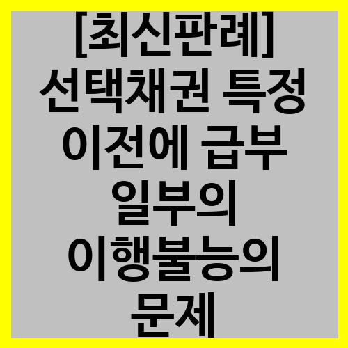 1) 채권의 목적으로 선택할 수개의 행위 중에 처음부터 불능한 것이나 또는 후에 이행불능하게 된 것이 있으면 채권의 목적은 잔존한 것에 존재한다(민법 제385조 제1항). 선택채권의 목적인 급부 중 하나가 일부불능인 경우 불능인 부분을 제외한 나머지 잔부의 급부만으로 채권의 목적을 달성할 수 있으면 해당급부의 이행이 불능이라고 할 수 없을 것이나, 그 잔부의 급부만으로 채권의 목적을 달성할 수 없다면 해당급부를 전부불능으로 보아야 한다.