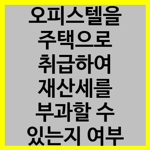 대법원은 2023. 11. 16. 선고한 2023두47435 재산세부과처분취소 사건에서 오피스텔에 대하여 재산세를 부과할 때 사실상의 현황에 따라 재산세를 부과하여야 한다고 판단하였다. 아래에서 사건개요, 원심의 판단, 대법원의 판탄, 판례원문을 살펴보도록 하겠다.