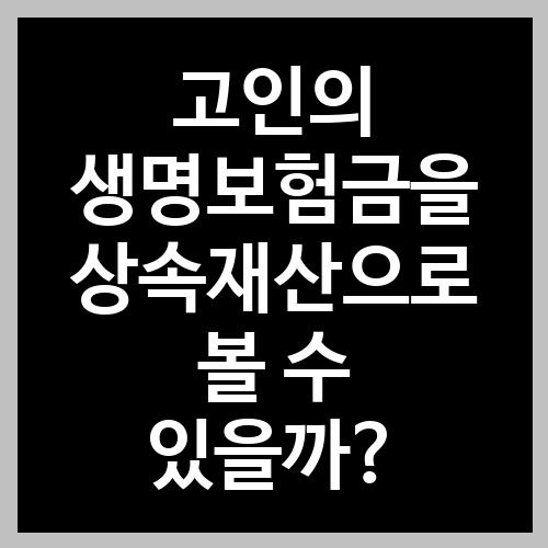 피상속인의 생명보험금이 상속재산에 속하는지에 관하여 판례는 " 보험계약자가 피보험자의 상속인을 보험수익자로 하여 맺은 생명보험계약에 있어서 피보험자의 상속인은 피보험자의 사망이라는 보험사고가 발생한 때에는 보험수익자의 지위에서 보험자에 대하여 보험금 지급을 청구할 수 있고, 이 권리는 보험계약의 효력으로 당연히 생기는 것으로서 상속재산이 아니라 상속인의 고유재산이라고 할 것이다."라고 하여 (대법원 2004. 7. 9. 선고 2003다29463 판결) , 상속인의 보험금청구권은 상속재산이 아니라 상속인의 고유재산이라고 보고있습니다.