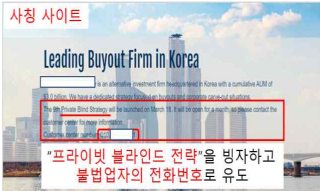 금융 투자 사기꾼들은 실제 기관 전용 사모펀드 운용 회사의 홈페이지와 유사한 가짜 사이트를 제작하여 투자자를 현혹합니다.