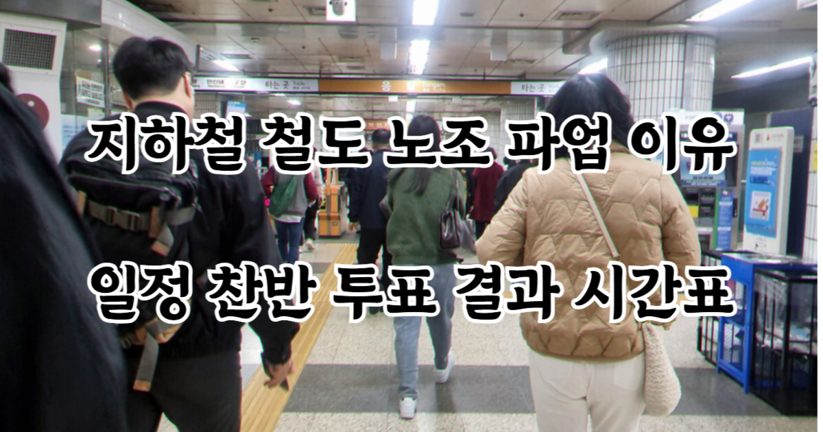 2024년 11월, 서울 지하철과 전국 철도 노조의 파업 움직임으로 시민들의 불편이 예상되고 있습니다. 이번 글에서는 지하철 파업 이유, 일정 찬반 투표 결과, 지하철 시간표 확인 방법 등 에 대해 자세히 알아보겠습니다.